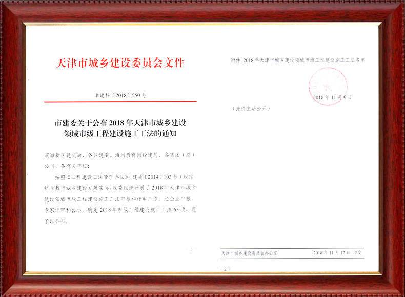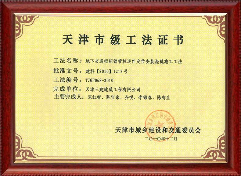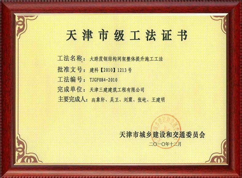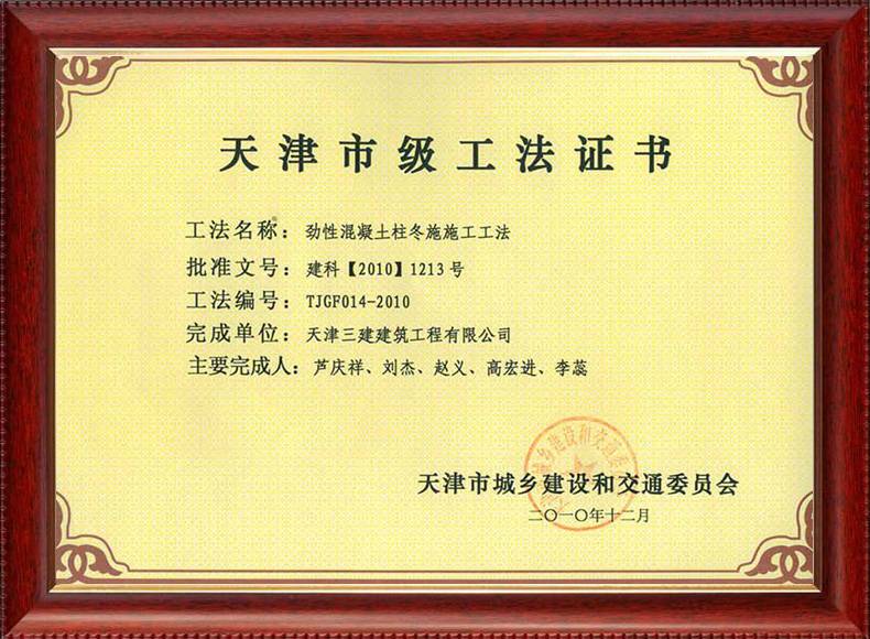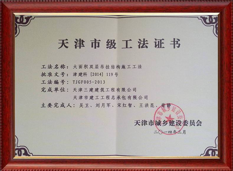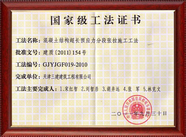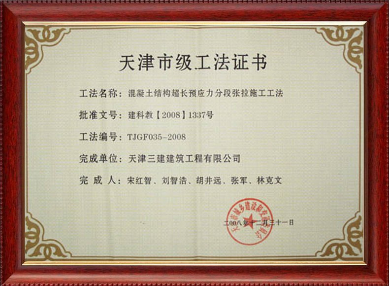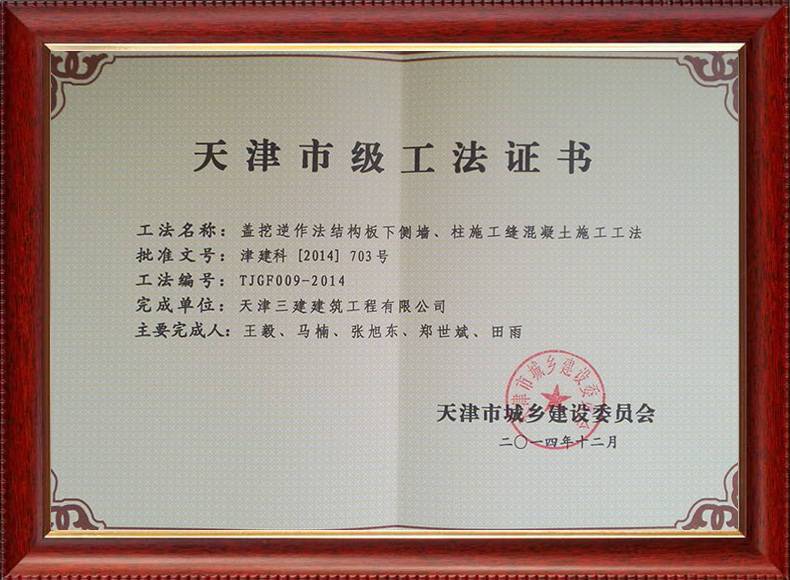 三建公司不斷發揚科技創新精神,注重施工經驗的提練和總結,編寫了27項工法,其中國家級工法3項,市級工法24項。為促進城市建設快速發展,不斷提升施工工藝水平做出了重要貢獻。