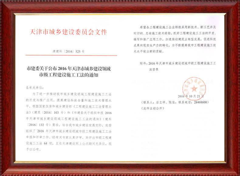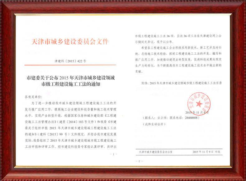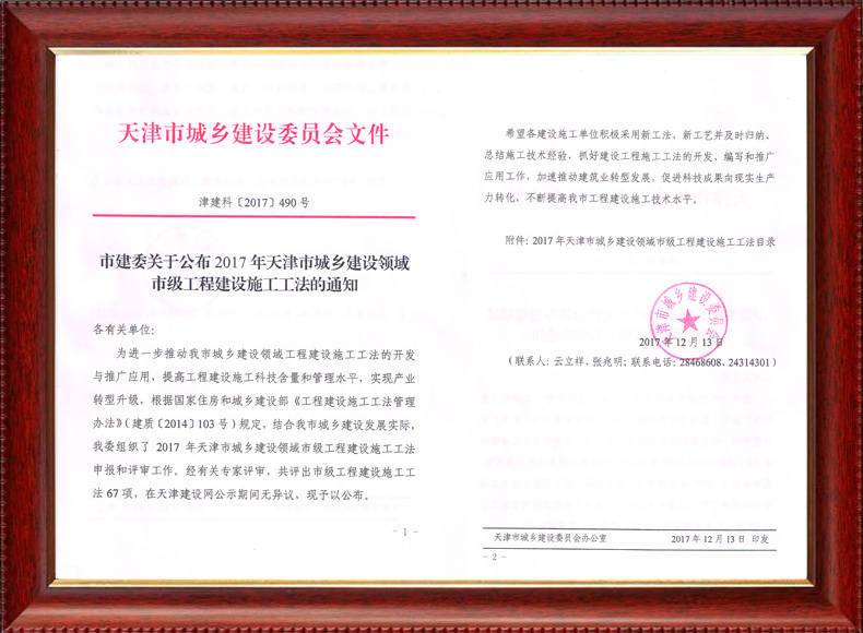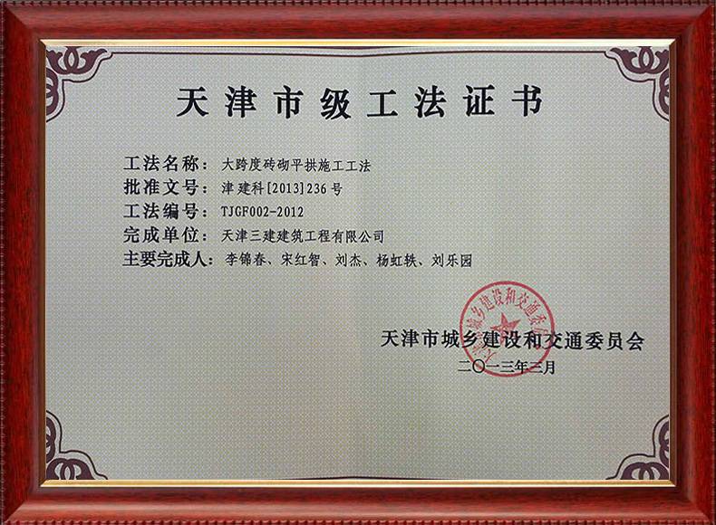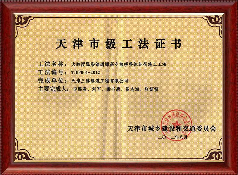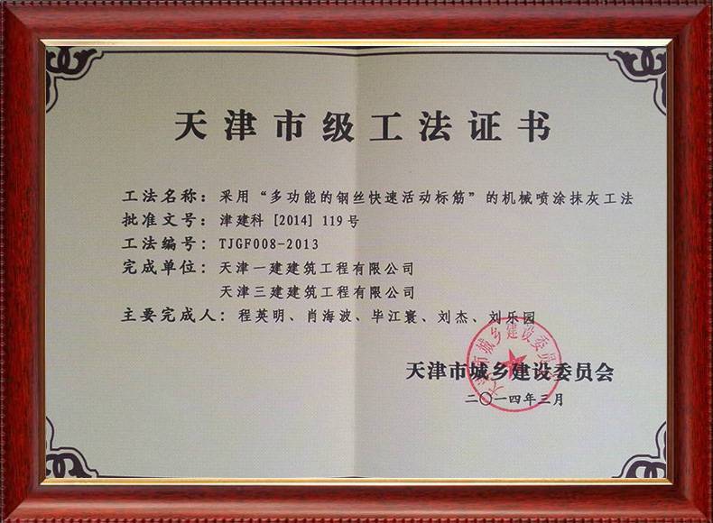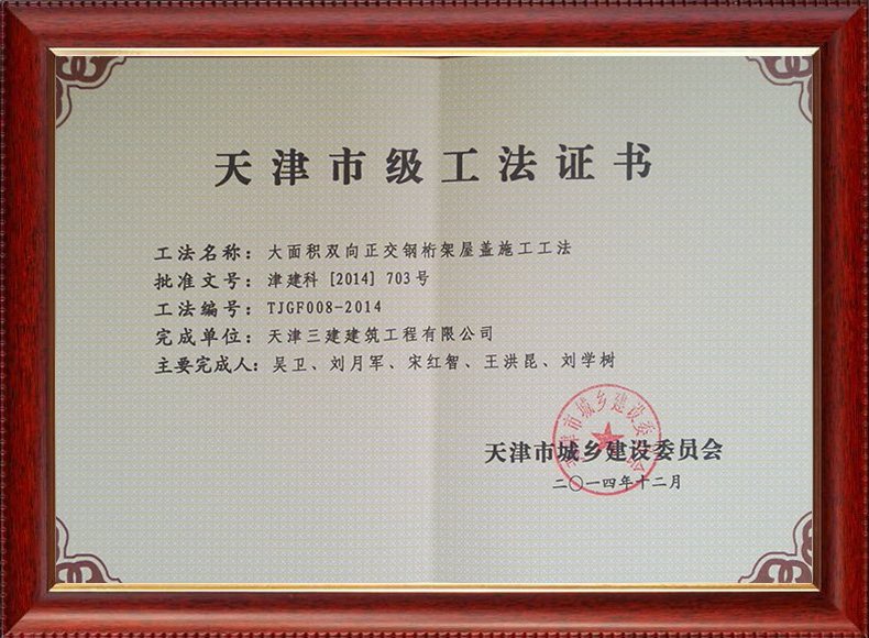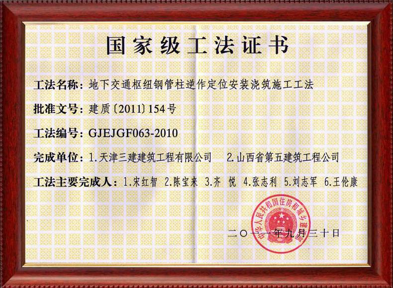 三建公司不斷發揚科技創新精神,注重施工經驗的提練和總結,編寫了27項工法,其中國家級工法3項,市級工法24項。為促進城市建設快速發展,不斷提升施工工藝水平做出了重要貢獻。